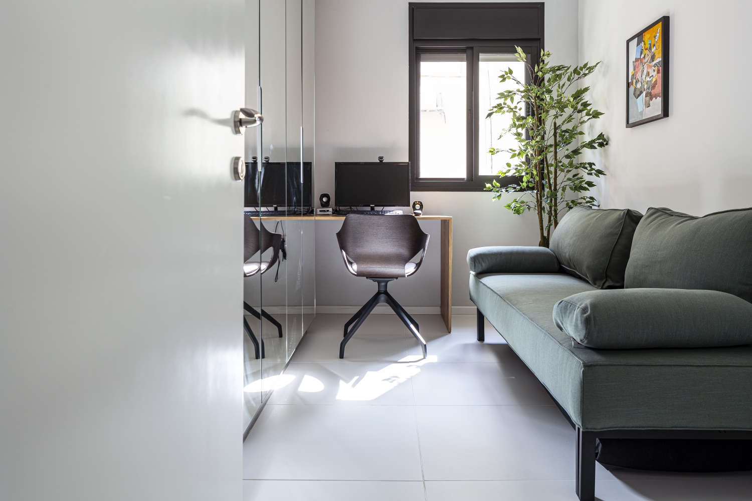 כמו במרבית הדירות התל אביביות, השטח הפרטי של חדרי השינה אינו גדול ועל כן נשמר קונספט מינימליסטי ובהיר.