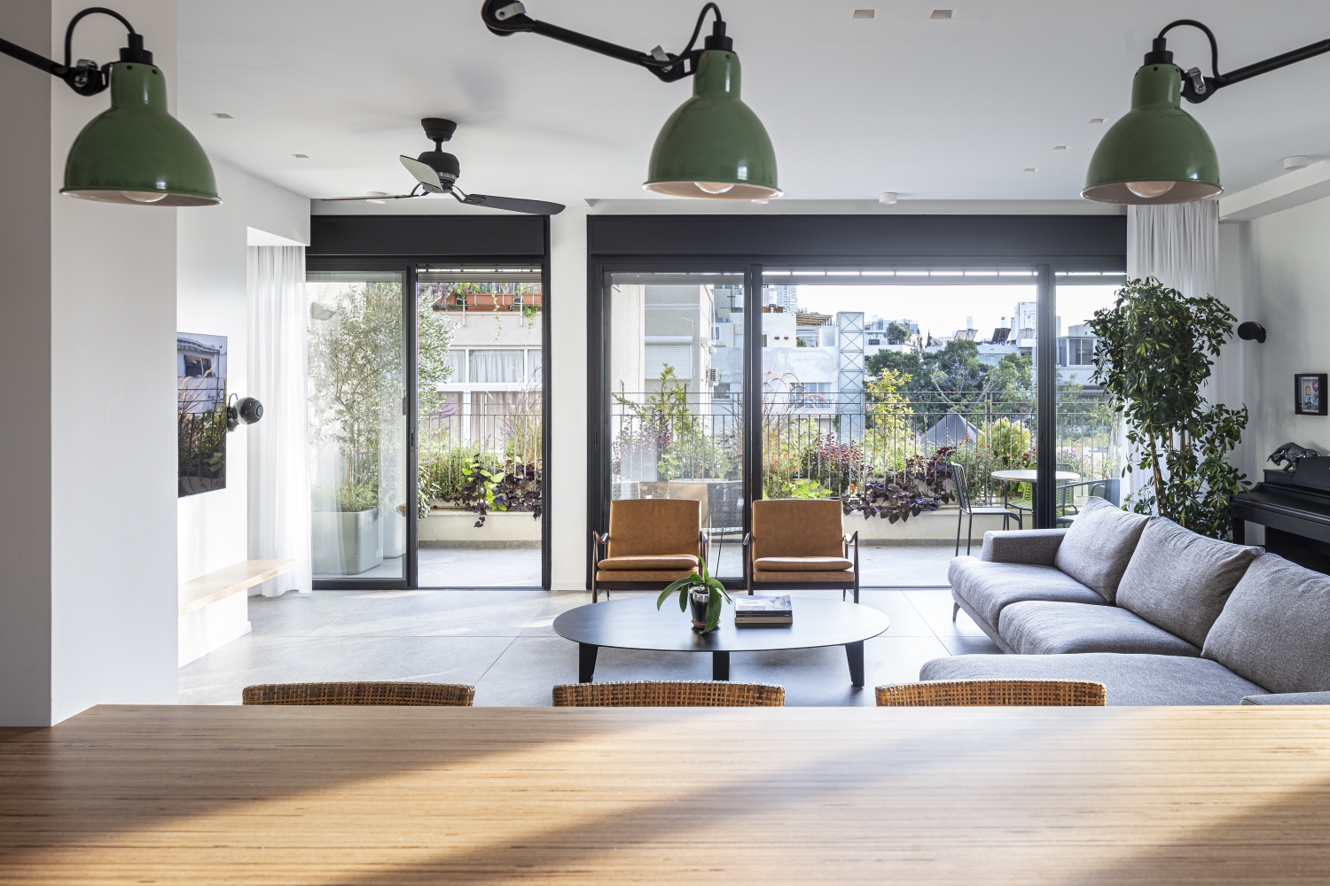 ההתאהבות הראשונית של הדייר הייתה בזכות החלל הציבורי הרחב והפתוח למרפסת מלאה שמש מדרום. המטרה הייתה לשמור על המרחב, קונספט עיצובי מודרני, אוורירי, אלגנטי אך לא מנוכר, שכיף לארח בו.